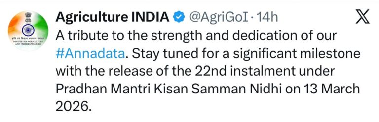 PM kisan Yojana 22th kist Date: पीएम किसान योजना का लाभ ले रहे किसानों के लिए बड़ी खुशखबरी आ गई है। पीएम किसान योजना की 22वीं किस्त की तारीख जारी कर दी गई है। फाइनली करोड़ों किसानों का इंतजार खत्म हुआ ऑफिशल डेट जारी कर दी गई है। सोशल मीडिया प्लेटफॉर्म एक पर पीएम किसान योजना की ऑफिशियल हैंडल के द्वारा इस डेट को अनाउंस किया गया है।